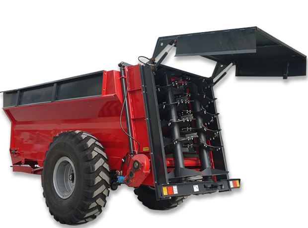 大型雙豎螺旋絞龍式后拋撒肥機(jī),是一款120馬力以上拖拉機(jī)為動(dòng)力...