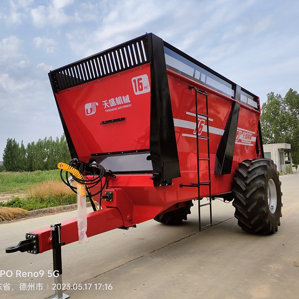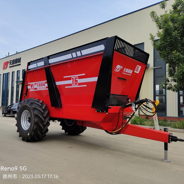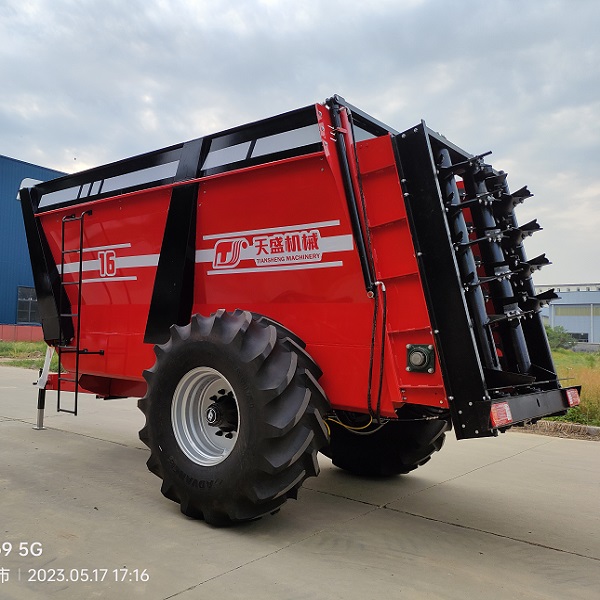 16立方雙豎螺旋絞龍式后拋撒肥機(jī),是一款180馬力以上拖拉機(jī)為動(dòng)力,把水分不超過(guò)80%的禽畜糞便、污泥、商品有機(jī)肥、農(nóng)家肥、干糞等肥料進(jìn)行拋撒還田的新型撒肥機(jī)器。該機(jī)肥料輸送結(jié)構(gòu),是由拖拉機(jī)后輸出驅(qū)動(dòng)液壓馬達(dá)工作,通過(guò)送肥裝置把整箱肥料均衡的運(yùn)送到出肥口;雙絞龍由拖拉機(jī)動(dòng)力輸出軸驅(qū)動(dòng),通過(guò)三聯(lián)體齒輪箱驅(qū)動(dòng)絞龍旋轉(zhuǎn)攪碎肥料,同時(shí)把糞肥均勻的拋撒出去。