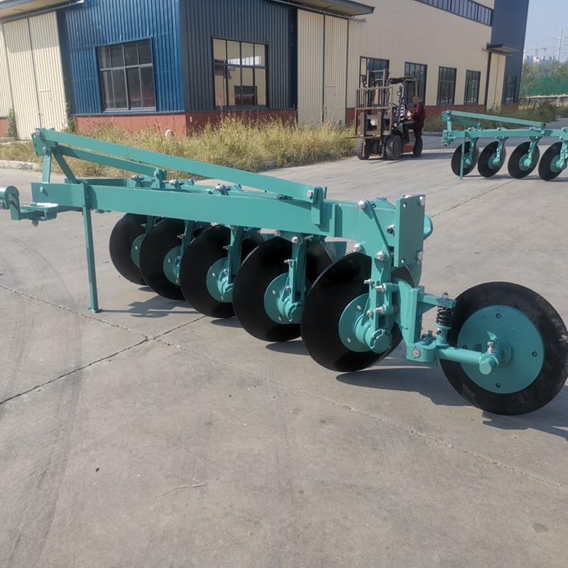 圓盤犁是與拖拉機三點懸掛連接配套,作業(yè)時犁片旋轉運動,對土壤進行耕翻作業(yè),特別適用于雜草叢生,莖稈直立,土壤比阻較大,土壤中有磚塊等復雜農田的耕翻作業(yè),具有不纏草、不阻塞、不壅土,能夠切斷作業(yè)莖稈、克服土壤中的磚碎塊,工作效率高、作業(yè)質量好,調整方便、堅固耐用等特點。
