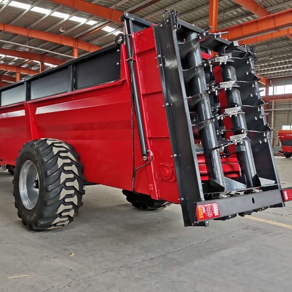 豎螺旋撒布器,破碎能力強,撒布寬度為8-12米,即使含水量80%的糞肥與污泥,也能撒布。