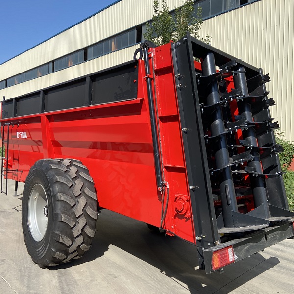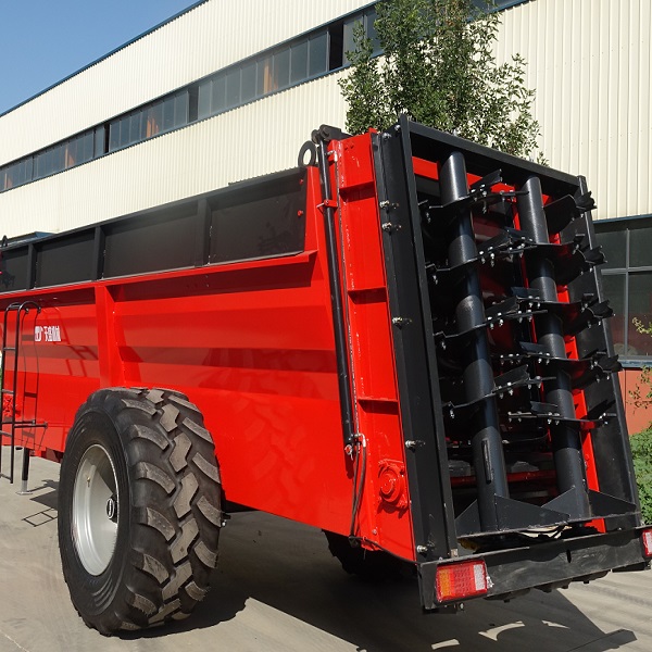 12立方雙豎螺旋絞龍式后拋撒肥機(jī),是一款120馬力以上拖拉機(jī)為動力,把水分不超過80%的禽畜糞便、污泥、商品有機(jī)肥、農(nóng)家肥、干糞等肥料進(jìn)行拋撒還田的新型撒肥機(jī)器。該機(jī)肥料輸送結(jié)構(gòu),是由拖拉機(jī)后輸出驅(qū)動液壓馬達(dá)工作,通過送肥裝置把整箱肥料均衡的運(yùn)送到出肥口;雙絞龍由拖拉機(jī)動力輸出軸驅(qū)動,通過三聯(lián)體齒輪箱驅(qū)動絞龍旋轉(zhuǎn)攪碎肥料,同時(shí)把糞肥均勻的拋撒出去。