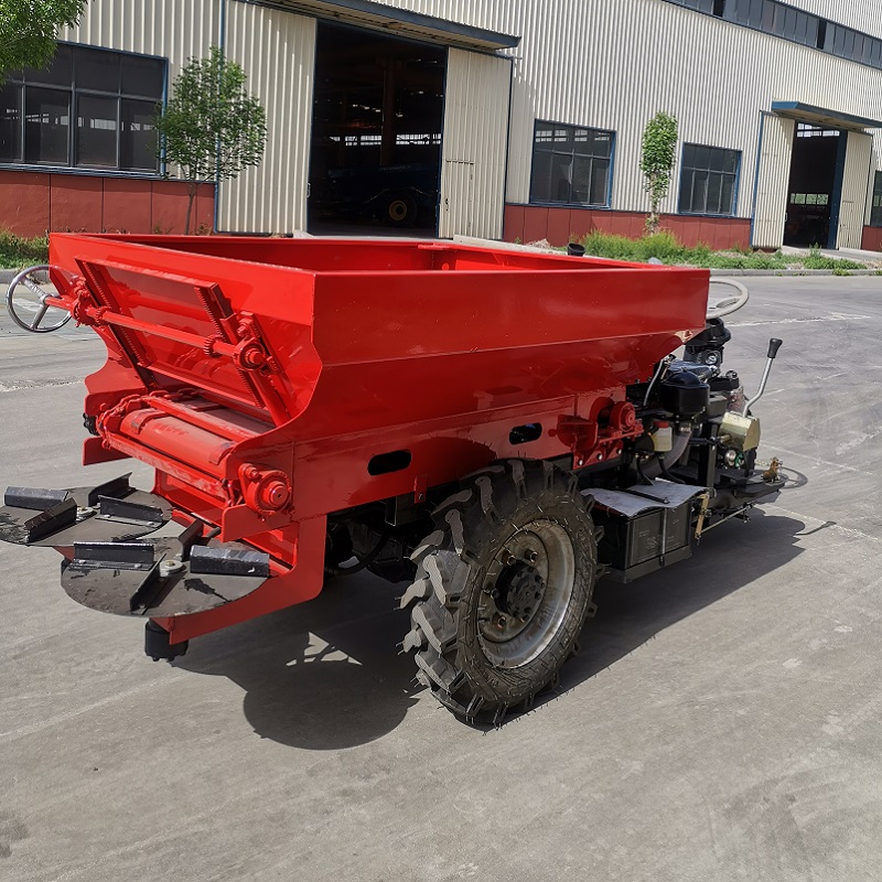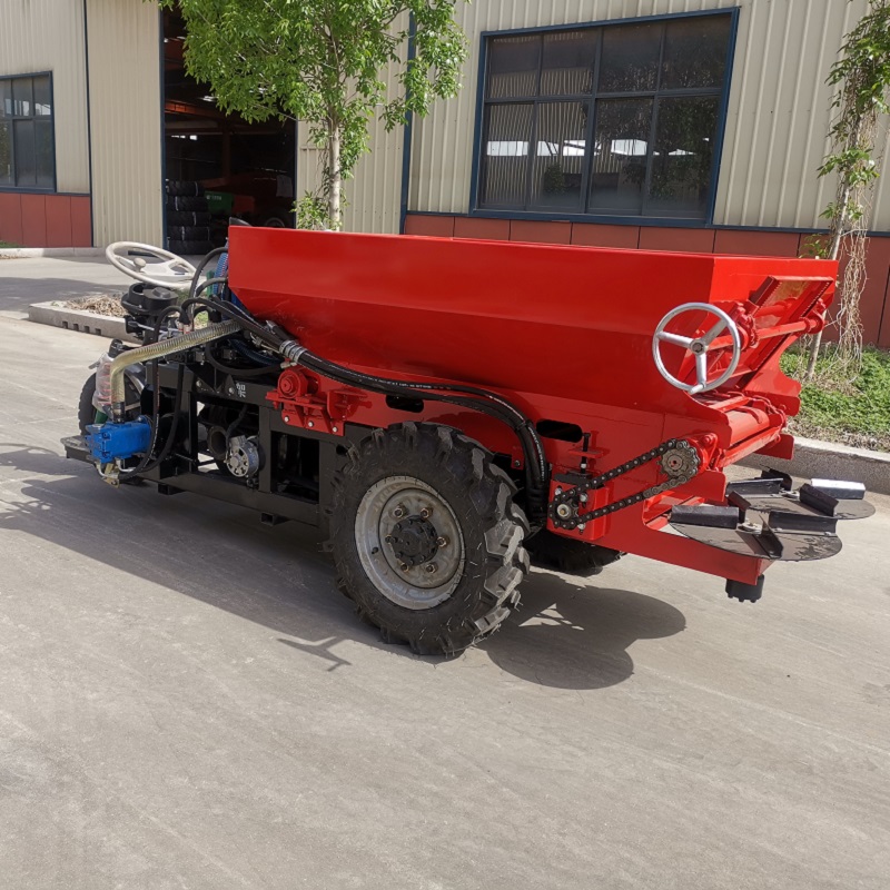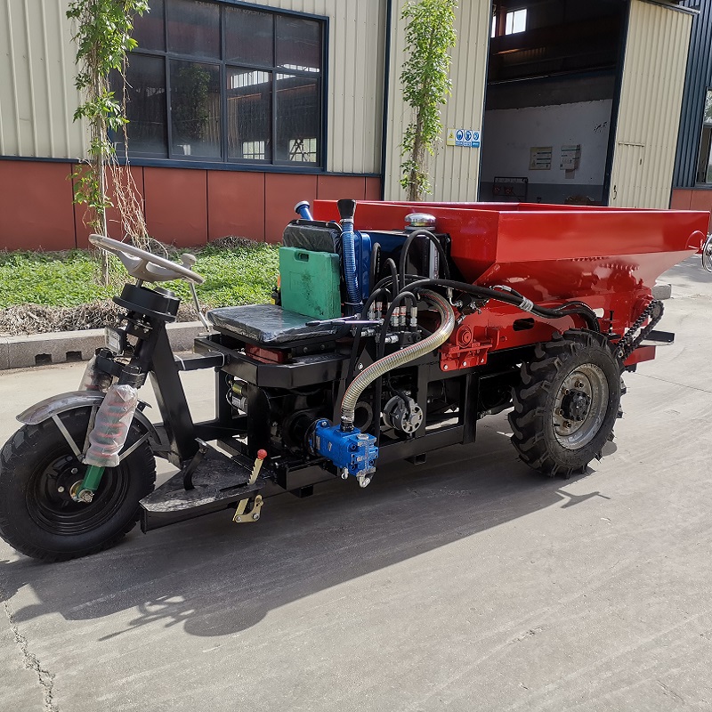 三輪車自走式撒肥車,采用螺旋絞龍結構和雙圓盤裝置進行肥料拋撒(還可定制順肥、鋪肥等撒肥裝置),自帶動力,無需拖拉機帶動,整機結構緊湊靈活,適用性廣泛。采用五征三輪車底盤結構,自帶大馬力柴油機動力,運輸、施肥動力有保障;肥料輸送、肥料拋撒結構均由液壓控制,速度均可調;即可揚撒各類農家肥、有機肥、濕糞,也可直接鋪肥;送肥速度、送肥量大小可根據用戶使用需求進行調節(jié);適用于蔬菜大棚、大田、果園等作業(yè)環(huán)境。