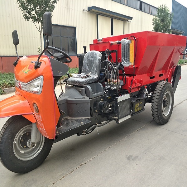三輪車自走式撒肥車,采用螺旋絞龍結構和雙圓盤裝置進行肥料拋撒(還可定制順肥、鋪肥等撒肥裝置),自帶動力,無需拖拉機帶動,整機結構緊湊靈活,適用性廣泛。采用五征三輪車底盤結構,自帶大馬力柴油機動力,運輸、施肥動力有保障;肥料輸送、肥料拋撒結構均由液壓控制,速度均可調;即可揚撒各類農家肥、有機肥、濕糞,也可直接鋪肥;送肥速度、送肥量大小可根據用戶使用需求進行調節(jié);適用于蔬菜大棚、大田、果園等作業(yè)環(huán)境。