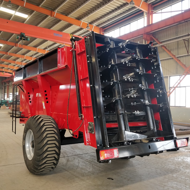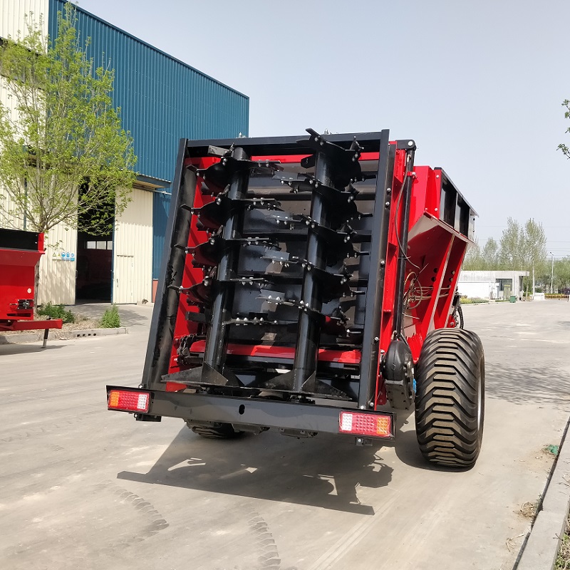 大型雙豎螺旋絞龍式后拋撒肥機,變速箱與傳動箱均為原裝進口,性能可靠;破碎刃為硼鋼材質(zhì),耐磨,耐腐蝕;輸送使用高強度礦用圓環(huán)鏈,更耐用。可撒施各種有機肥、農(nóng)家肥、干濕糞肥等肥料,主要適用于大型農(nóng)場的糞肥拋撒還田。雙豎螺旋撒布器,破碎能力強,糞肥中的小凍塊可以通過絞龍破碎刃,進行攪拌、破碎,然后均勻拋撒出來,撒布寬度為8-12米,即使含水量80%的糞肥與污泥,也能撒布均勻。